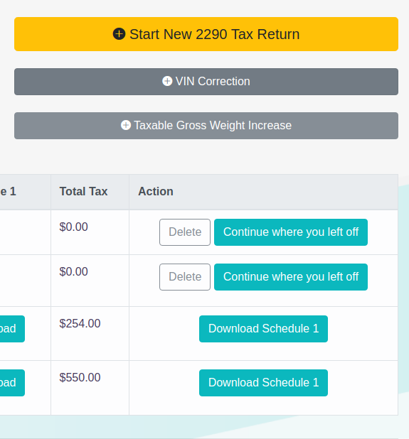 2290Done.com can get your 2290 amendment filing processed directly with the IRS in 15 minutes! Once our team gets the 2290 amendment filed and approved with the IRS, you will receive an email notification with a new watermarked Schedule 1 that includes the amended vehicle information. You can also log in to your 2290Done.com account to view and download your updated Schedule 1 at any time.